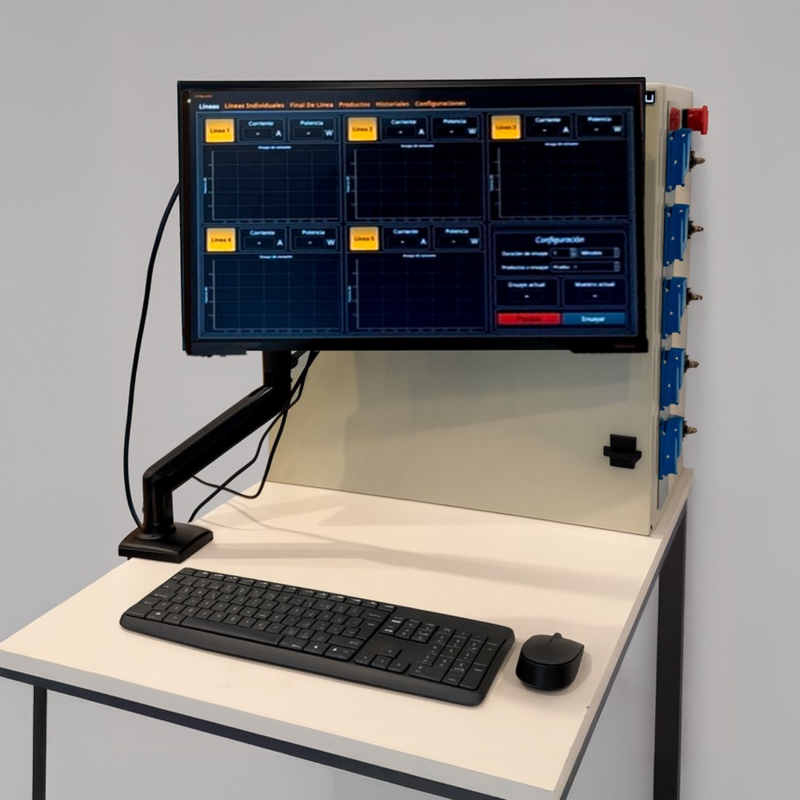 Equipo compacto diseñado para realizar ensayos eléctricos finales en hasta 5 productos monofásicos de manera consecutiva sin reconexión manual.